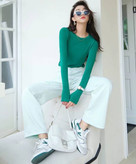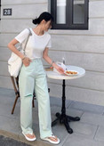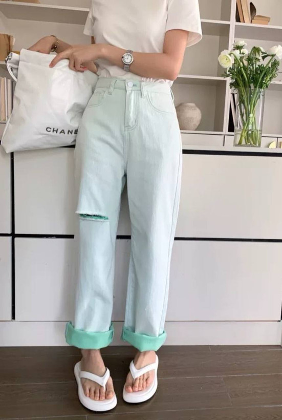 شلوار جین کجراه سبز یخی